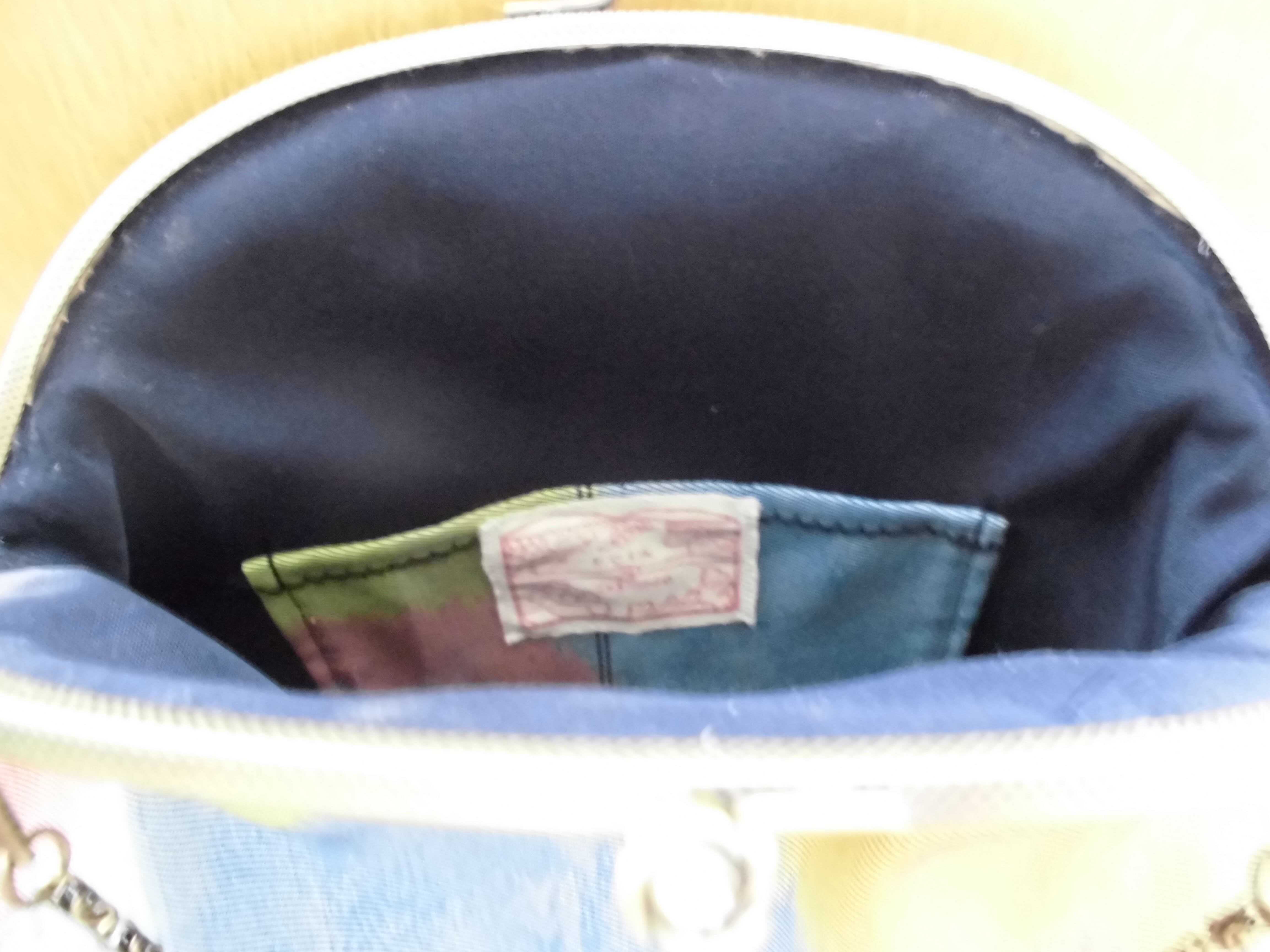 とってもポップで個性的な柄の絹の袋帯を見つけましたのでがま口バックを作ってみました。裏地も同じ帯の無地の紺色部分を使って両面帯地の非情に贅沢なバックに仕上がっています。帯地とはいえ柔らかい生地で、表地の柄の部分は少し光沢があります。