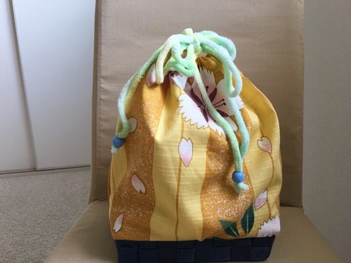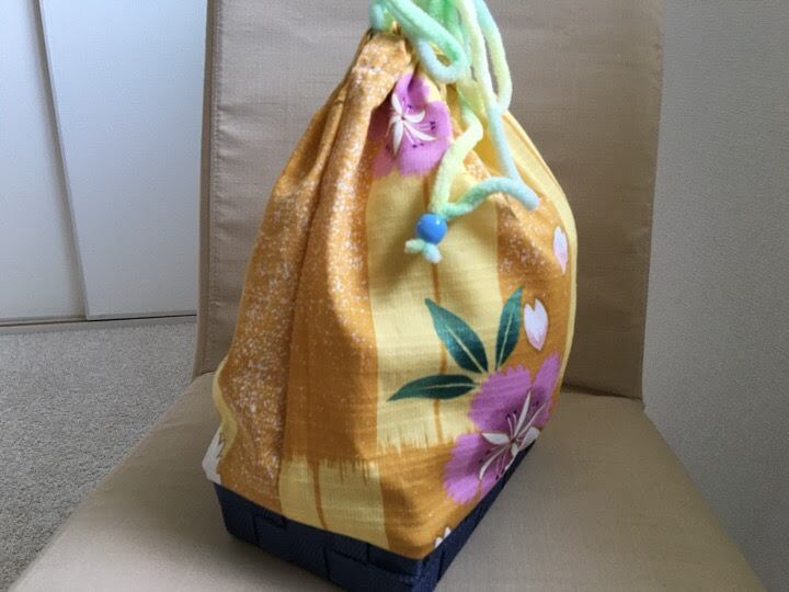 まだまだ綺麗な浴衣を解いて籠巾着を作ってみました。