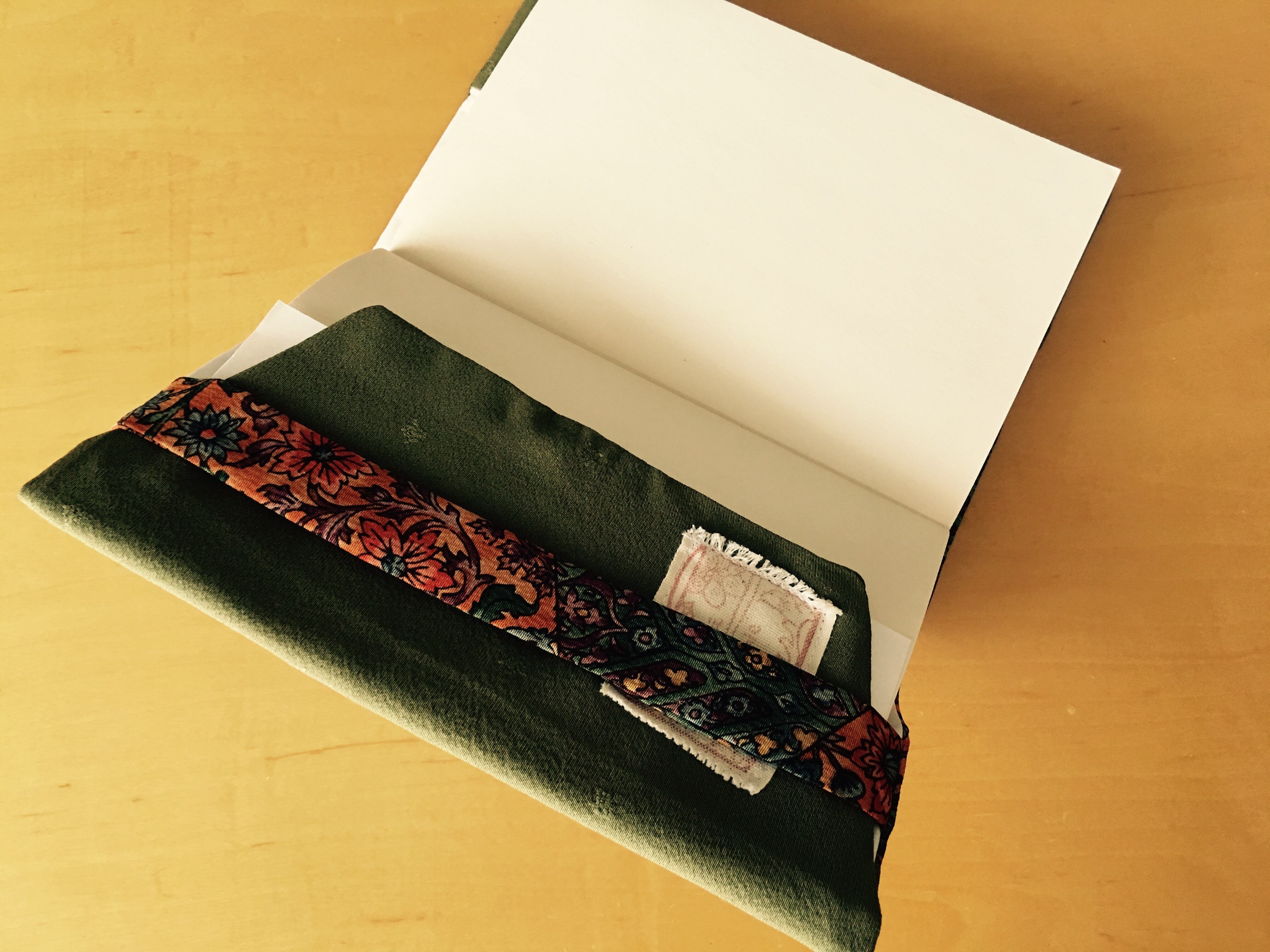 使用浅更紗小紋と未使用色無地を解いて作ったブックカバーです。